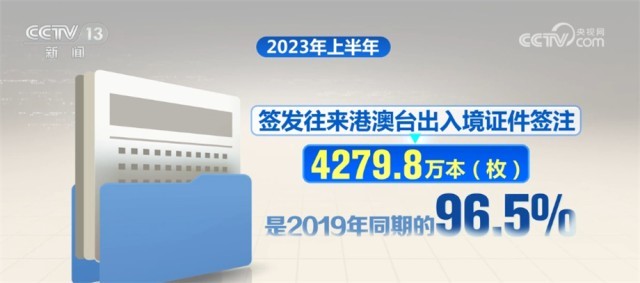 今年上半年,各地公安機(jī)關(guān)出入境管理部門共簽發(fā)普通護(hù)照1000余萬本,是2019年同期的68.2%;簽發(fā)往來港澳臺出入境證件簽注4279.8萬本(枚),是2019年同期的96.5%;為在華外國人辦理停留居留證件37.9萬人次,是2019年同期的86.7%。