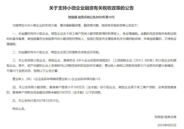 央視網消息:據(jù)財政部,為繼續(xù)加大對小微企業(yè)的支持力度,推動緩解融資難、融資貴問題,現(xiàn)將有關稅收政策公告如下: