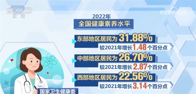 央視網(wǎng)消息:國家衛(wèi)生健康委今天(8月21日)公布《2022 年中國居民健康素養(yǎng)監(jiān)測情況》。2022年,我國居民健康素養(yǎng)水平達(dá)到27.78%,比2021年提高2.38個百分點,繼續(xù)呈現(xiàn)穩(wěn)步提升態(tài)勢。