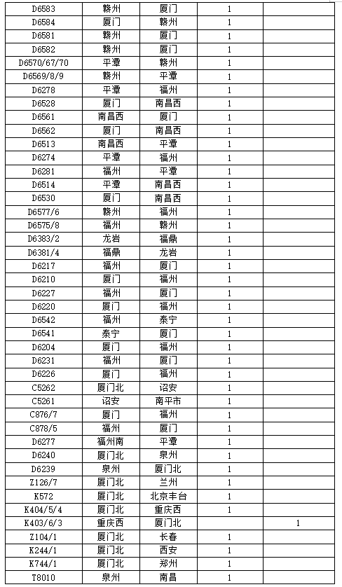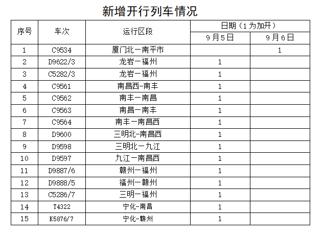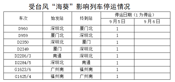 據(jù)中央氣象臺消息,今年第11號臺風(fēng)“??庇诮裉欤?月5日)早晨5點20分前后在福建省東山縣沿海登陸,福建東部部分地區(qū)將有大暴雨,并伴有短時強(qiáng)降水,局地有雷暴大風(fēng)等強(qiáng)對流天氣。為防范臺風(fēng)影響,保障鐵路運(yùn)輸安全,中國鐵路南昌局集團(tuán)有限公司繼續(xù)調(diào)整部分旅客列車運(yùn)行方案,停運(yùn)管內(nèi)途經(jīng)杭深線福州南至詔安,龍漳線龍巖至漳州,昌福線三明北至福州等區(qū)段旅客列車。同時,加開15趟旅客列車,方便旅客出行。