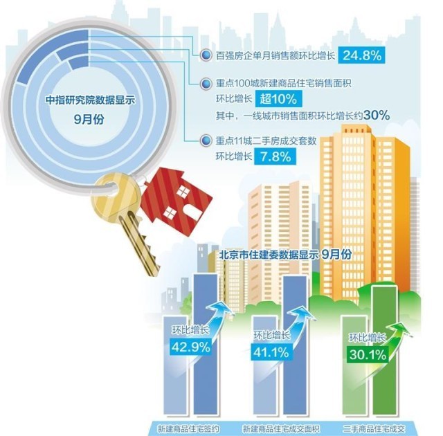 隨著需求釋放動(dòng)能減弱,9月后兩周成交量明顯下降。北京市住建委數(shù)據(jù)顯示,9月份,北京新建商品住宅簽約5891套,成交面積67.96萬(wàn)平方米,環(huán)比分別增長(zhǎng)42.9%和41.1%;二手商品住宅成交14262套,環(huán)比增長(zhǎng)30.1%。
