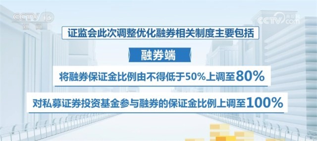 證監(jiān)會此次調整優(yōu)化融券相關制度主要包括:融券端,將融券保證金比例由不得低于50%上調至80%,對私募證券投資基金參與融券的保證金比例上調至100%;出借端,取消上市公司高管及核心員工通過參與戰(zhàn)略配售設立的專項資產管理計劃出借,適度限制其他戰(zhàn)略投資者在上市初期的出借方式和比例。