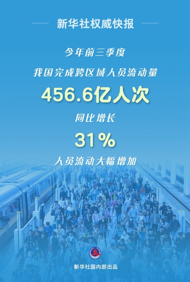 今年前三季度我國(guó)完成跨區(qū)域人員流動(dòng)量456.6億人次