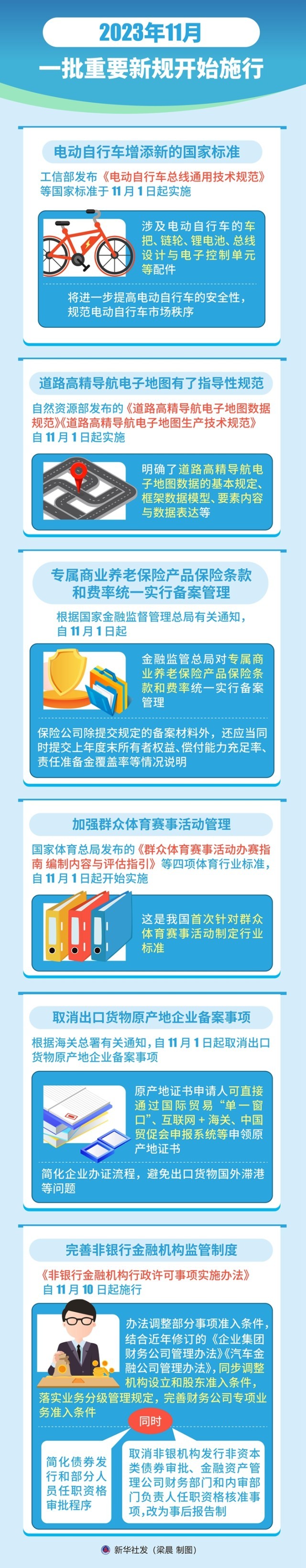 電動自行車增添新國標,為用戶提供更多安全保障;道路高精導航電子地圖有了指導性規(guī)范,讓自駕出行更加高效便捷;完善專屬商業(yè)養(yǎng)老保險產(chǎn)品管理制度,守好居民“養(yǎng)老錢”……一批重要新規(guī)11月開始施行。一起看看,哪條你最關心?