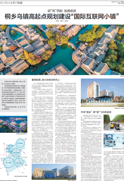 11月1日,《浙江日?qǐng)?bào)》整版刊發(fā)《迎“風(fēng)”而起 加速前進(jìn)桐鄉(xiāng)烏鎮(zhèn)高起點(diǎn)規(guī)劃建設(shè)“國(guó)際互聯(lián)網(wǎng)小鎮(zhèn)”》,全文如下: