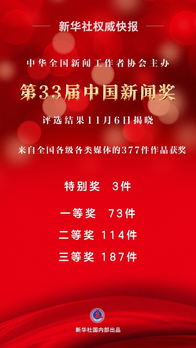 由中華全國新聞工作者協(xié)會(huì)主辦的第33屆中國新聞獎(jiǎng)評選結(jié)果11月6日揭曉。