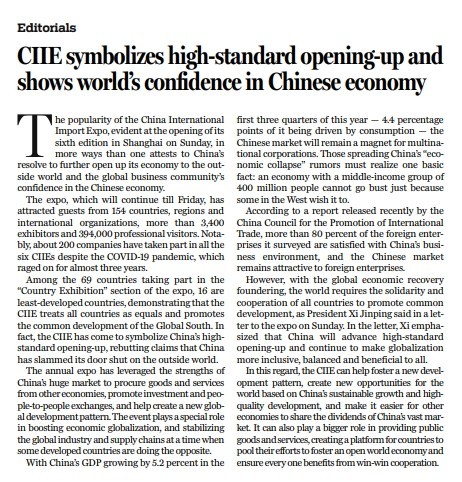 原標(biāo)題:CIIE symbolizes high-standard opening-up and shows world’s confidence in Chinese economy