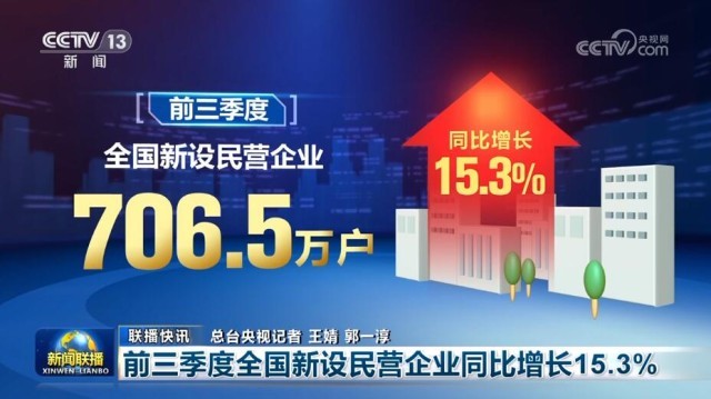 另外,市場(chǎng)監(jiān)管總局今天公布數(shù)據(jù)顯示,前三季度,全國(guó)新設(shè)民營(yíng)企業(yè)706.5萬(wàn)戶,同比增長(zhǎng)15.3%。截至今年9月底,全國(guó)登記在冊(cè)民營(yíng)企業(yè)數(shù)量超過(guò)5200萬(wàn)戶,民營(yíng)企業(yè)在企業(yè)總量中的占比達(dá)到92.3%。