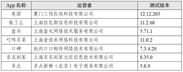 本次測試中國網(wǎng)絡(luò)空間安全協(xié)會選取了19家應(yīng)用商店累計下載量達到1億次的“餐飲外賣類”App,共計7款。