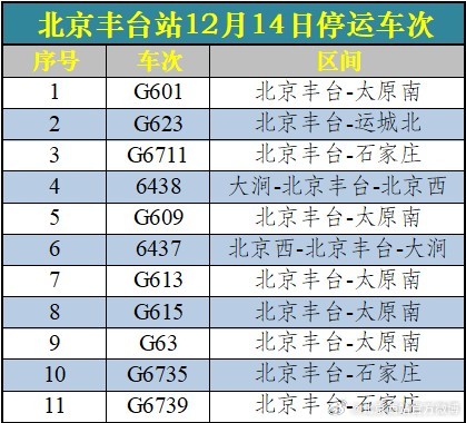 受降雪影響 北京西站、北京豐臺站12月14日60趟列車停運(yùn)