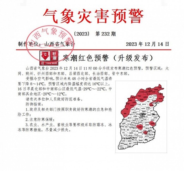 山西省氣象臺升級發(fā)布寒潮紅色預警