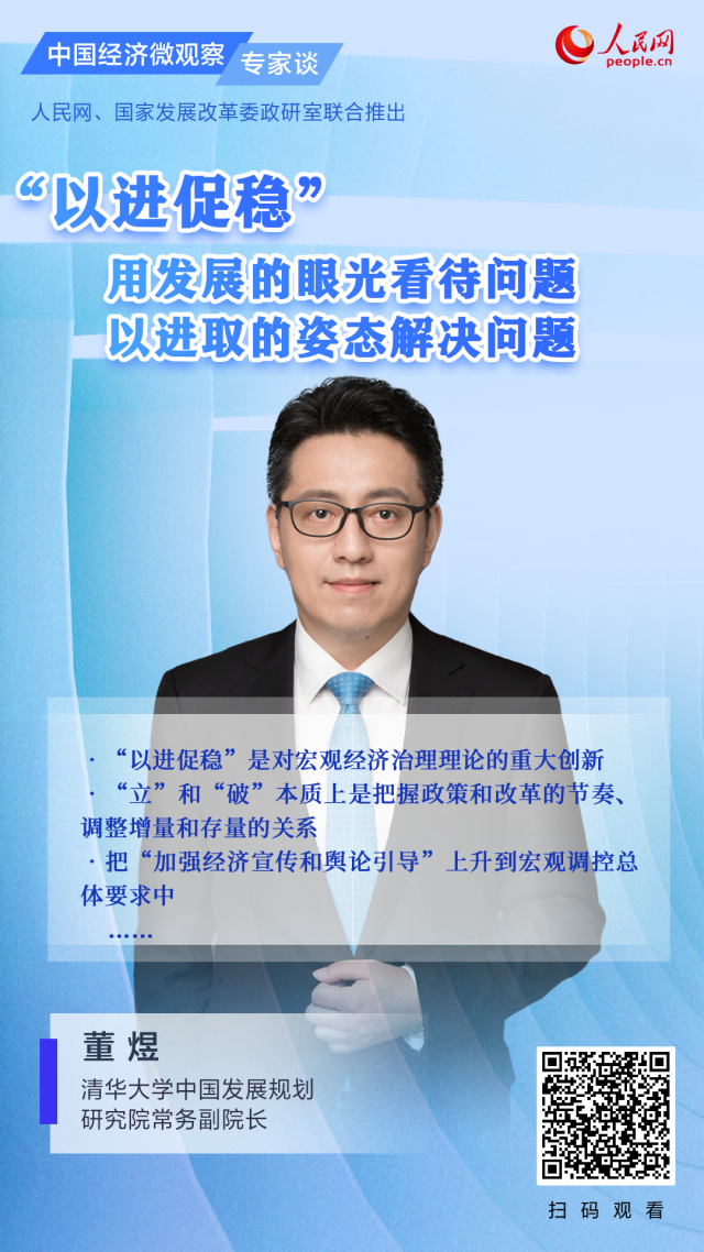 日前,清華大學(xué)中國(guó)發(fā)展規(guī)劃研究院常務(wù)副院長(zhǎng)董煜做客《中國(guó)經(jīng)濟(jì)微觀察·專(zhuān)家談》欄目時(shí)表示,“以進(jìn)促穩(wěn)”是對(duì)宏觀經(jīng)濟(jì)治理理論的重大創(chuàng)新,提出了進(jìn)和穩(wěn)之間基于動(dòng)態(tài)平衡的更高水平要求。他認(rèn)為這是一種新的穩(wěn)定觀,即以發(fā)展眼光看待問(wèn)題,并以積極進(jìn)取的姿態(tài)解決面臨的安全和穩(wěn)定問(wèn)題。實(shí)現(xiàn)“以進(jìn)促穩(wěn)”的目標(biāo),要通過(guò)結(jié)構(gòu)、質(zhì)量、效益、改革的“進(jìn)”來(lái)創(chuàng)造穩(wěn)定發(fā)展的環(huán)境。
