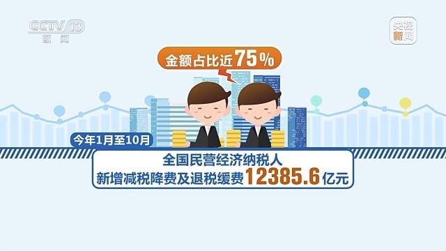 我國延續(xù)、優(yōu)化的這批階段性稅費優(yōu)惠政策中,民營經(jīng)濟納稅人是主要受益對象。國家稅務(wù)總局?jǐn)?shù)據(jù)顯示,今年1月至10月,全國民營經(jīng)濟納稅人新增減稅降費及退稅緩費12385.6億元,金額占比近75%。