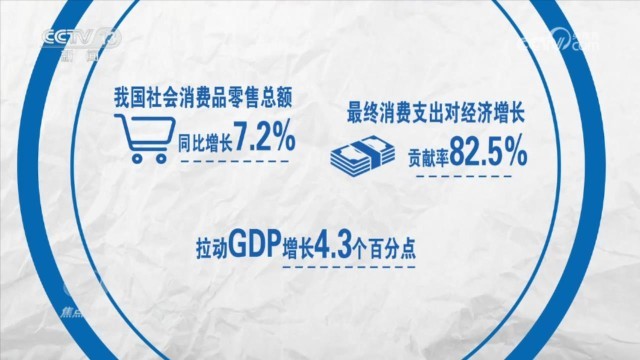 經(jīng)過短暫的波動(dòng),從7月份開始,消費(fèi)再次走出了企穩(wěn)回升的曲線。2023年,我國社會(huì)消費(fèi)品零售總額同比增長7.2%,最終消費(fèi)支出對經(jīng)濟(jì)增長貢獻(xiàn)率達(dá)到82.5%,拉動(dòng)GDP增長4.3個(gè)百分點(diǎn)。