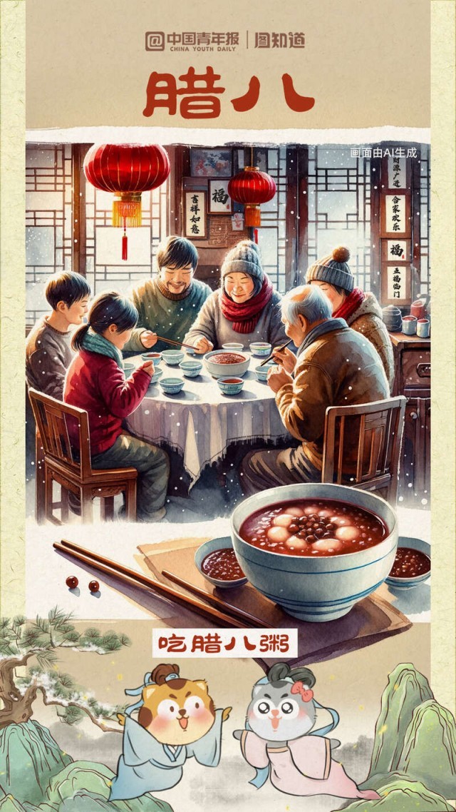 又是一年臘八時,道一聲萬事“粥”全。“用胡桃、松子、乳蕈、柿、栗之類為粥,謂之‘臘八粥’?!边@是南宋周密筆下的臘八粥。你的“臘八”餐桌想擺上哪些地方的美食?①湖南湖北的熏臘肉②北方地區(qū)的臘八蒜、臘八醋③陜西關(guān)中地區(qū)臘八面……過了臘八就是年,幾幅臘八美食與你一起迎接小年。