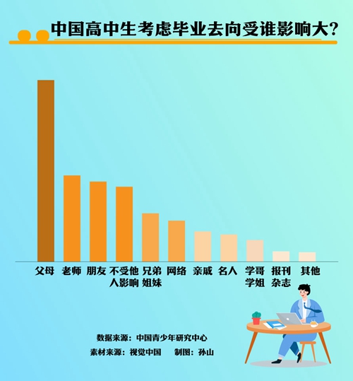 孫宏艷:首先,學校是職業(yè)生涯規(guī)劃教育的主要部門,學校把職業(yè)生涯規(guī)劃教育搞好了,學生能對自己和職業(yè)有準確的認知和定位,他們自然會選擇合適的職業(yè)和工作地。從這次的調(diào)查數(shù)據(jù)看,中國高中生已比過去更理性了,就業(yè)地首選已從北上廣這樣的國際大城市到所在地中心城市了。未來,隨著我國鄉(xiāng)村振興等政策的推進和城市的發(fā)展,青年也許會更愿意到所在地縣鎮(zhèn)村等基層去工作。這不僅依賴于政策和城市的發(fā)展,更依賴于青年對自我和職業(yè)的準確定位。