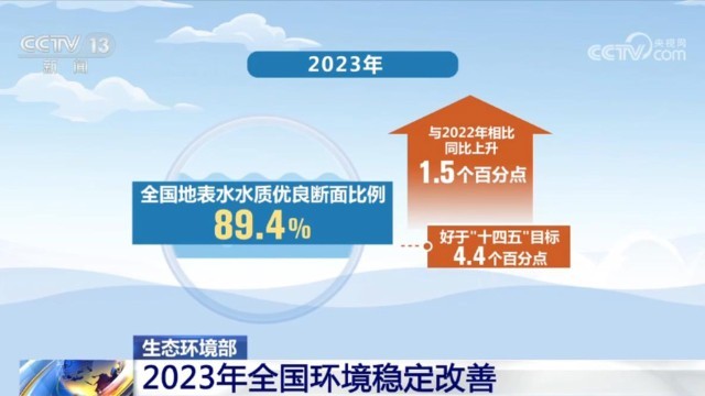 據(jù)生態(tài)環(huán)境部,2023年全國地表水水質(zhì)優(yōu)良斷面比例為89.4%,與2022年相比上升了1.5個百分點;長江、黃河干流全線水質(zhì)穩(wěn)定保持在二類;全國地下水一類至四類水質(zhì)點位比例為77.8%,同比上升0.2個百分點;全國近岸海域優(yōu)良海水水質(zhì)面積比例為85%,同比上升3.1個百分點。