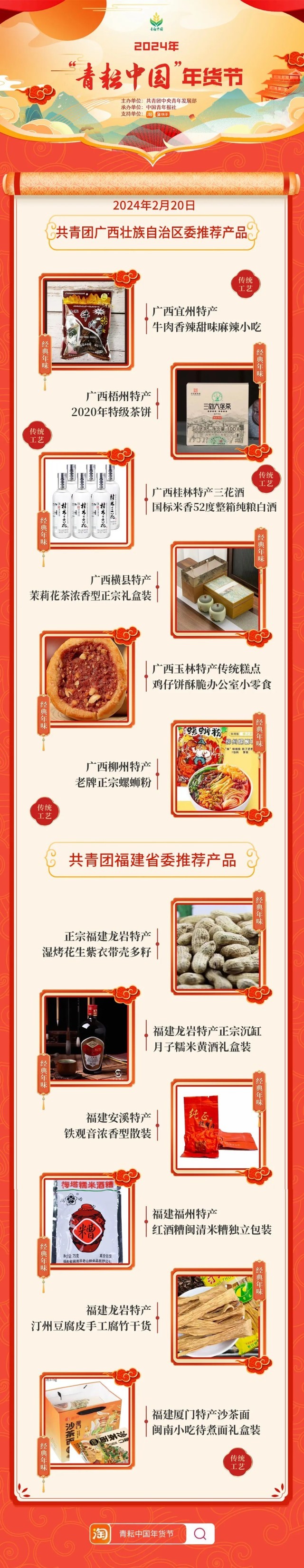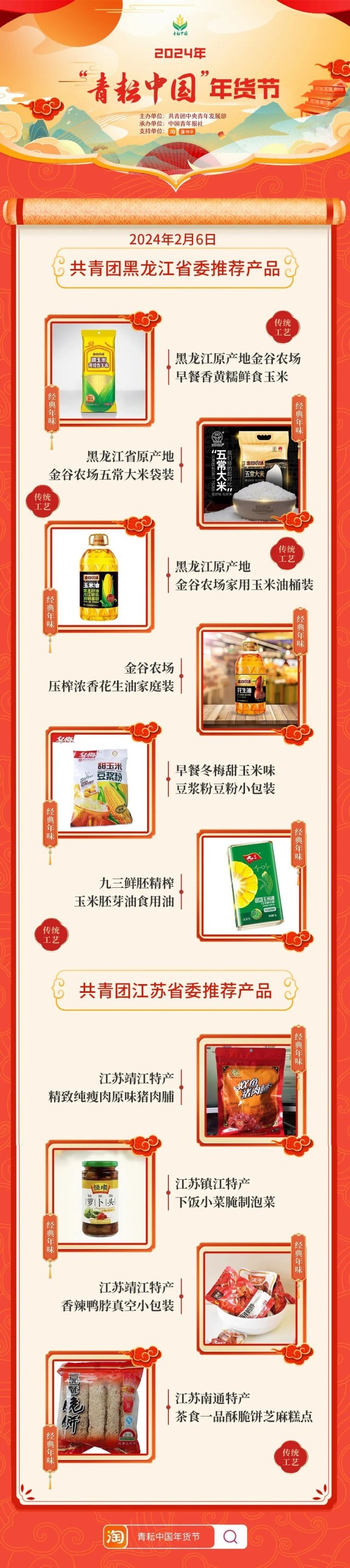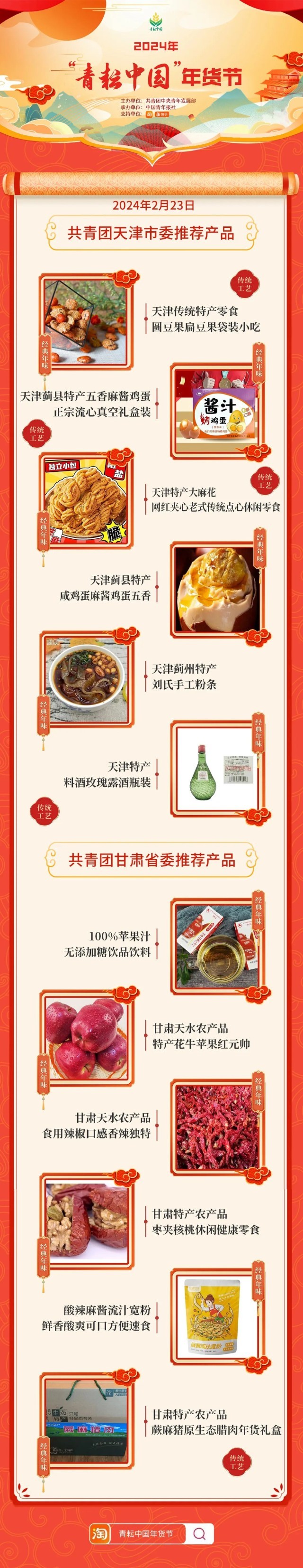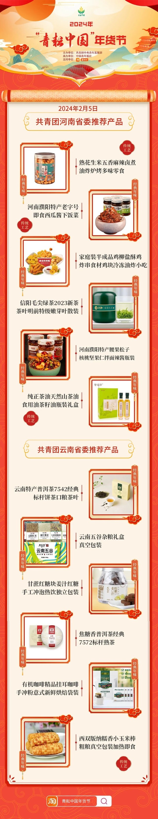 2024年“青耘中國”年貨節(jié)將于1月31日至2月24日,開展“一日兩省”主題日活動(dòng)。用戶可在淘寶APP搜索“青耘中國年貨節(jié)”進(jìn)入專題頁選購產(chǎn)品。