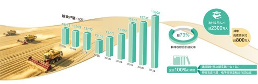 2023年,克服黃淮罕見“爛場(chǎng)雨”、華北東北局地嚴(yán)重洪澇、西北局部干旱等災(zāi)害影響,全年糧食產(chǎn)量13908.2億斤,高基數(shù)上增產(chǎn)177.6億斤,再創(chuàng)歷史新高;大豆播種面積穩(wěn)中有增,連續(xù)兩年穩(wěn)定在1.5億畝以上。今年中央一號(hào)文件明確提出確保糧食產(chǎn)量保持在1.3萬億斤以上的目標(biāo),重點(diǎn)是穩(wěn)面積、增單產(chǎn)兩手發(fā)力。