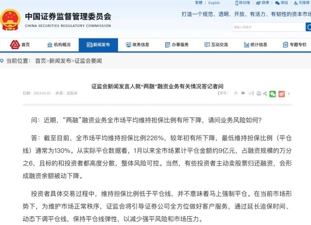 證監(jiān)會新聞發(fā)言人2月5日就“兩融”融資業(yè)務(wù)有關(guān)情況答記者問。