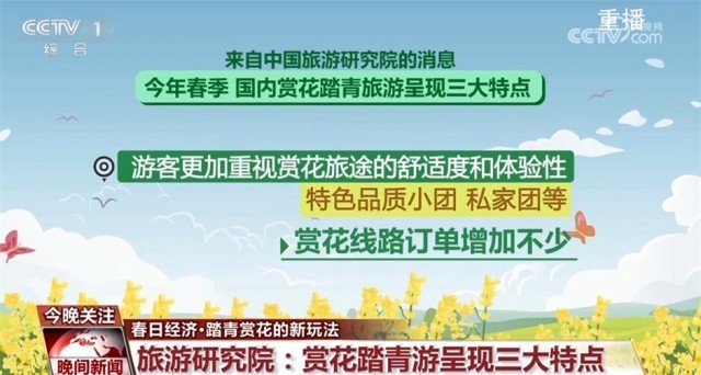 來自中國旅游研究院的消息,今年春季,國內(nèi)賞花踏青旅游呈現(xiàn)三大特點(diǎn):首先,除了常見的牡丹、桃花、油菜花之外,紫荊花、櫻桃花、馬蘭花等特色花種也受到游客關(guān)注;其次,國內(nèi)各大景區(qū)推出與傳統(tǒng)文化相關(guān)的賞花踏青活動(dòng),將傳統(tǒng)習(xí)俗體驗(yàn)與花季美景相結(jié)合;此外,游客也更加重視賞花旅途的舒適度和體驗(yàn)性,特色品質(zhì)小團(tuán)、私家團(tuán)等賞花線路訂單增加不少。