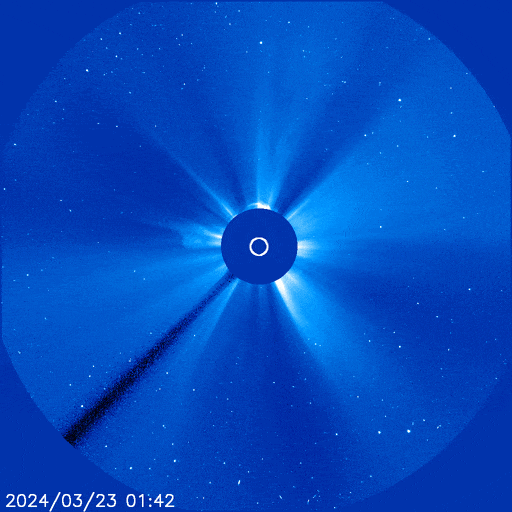 再加之此次日冕物質(zhì)拋射過(guò)程發(fā)生的位置幾乎正對(duì)地球。從地球看去,噴發(fā)物形成一個(gè)圓面,也就是“全暈”。此類爆發(fā)活動(dòng)噴出的太陽(yáng)物質(zhì)相對(duì)地球速度快、覆蓋度高,可能會(huì)引起比較強(qiáng)的地磁活動(dòng)。