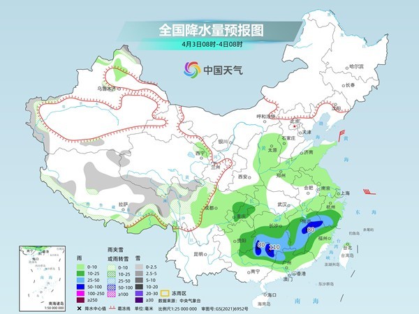 具體來(lái)看,中央氣象臺(tái)預(yù)計(jì),今天,新疆沿天山地區(qū)和南疆盆地、西藏北部和東部、青海大部、川西高原北部等地部分地區(qū)有小到中雪或雨夾雪,其中,新疆沿天山地區(qū)和南疆盆地、青海東北部等地部分地區(qū)有大到暴雪,新疆沿天山地區(qū)局地大暴雪(20~21毫米)。陜西東南部、河南中南部、安徽大部、江蘇中西部、四川東部、重慶大部、貴州東北部、湖北、湖南中北部、江西大部、浙江中西部、福建中西部等地部分地區(qū)有中到大雨,其中,河南南部、安徽中南部、湖北東部和南部、湖南北部和西部、江西北部和東南部、福建西部、重慶東南部等地部分地區(qū)有暴雨,局地大暴雨(100~120毫米)。