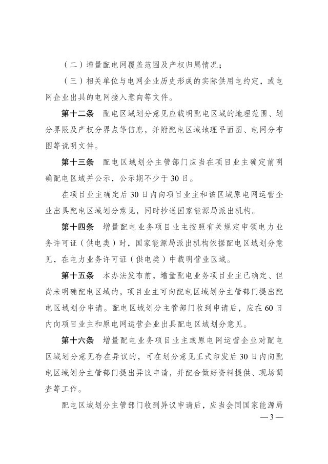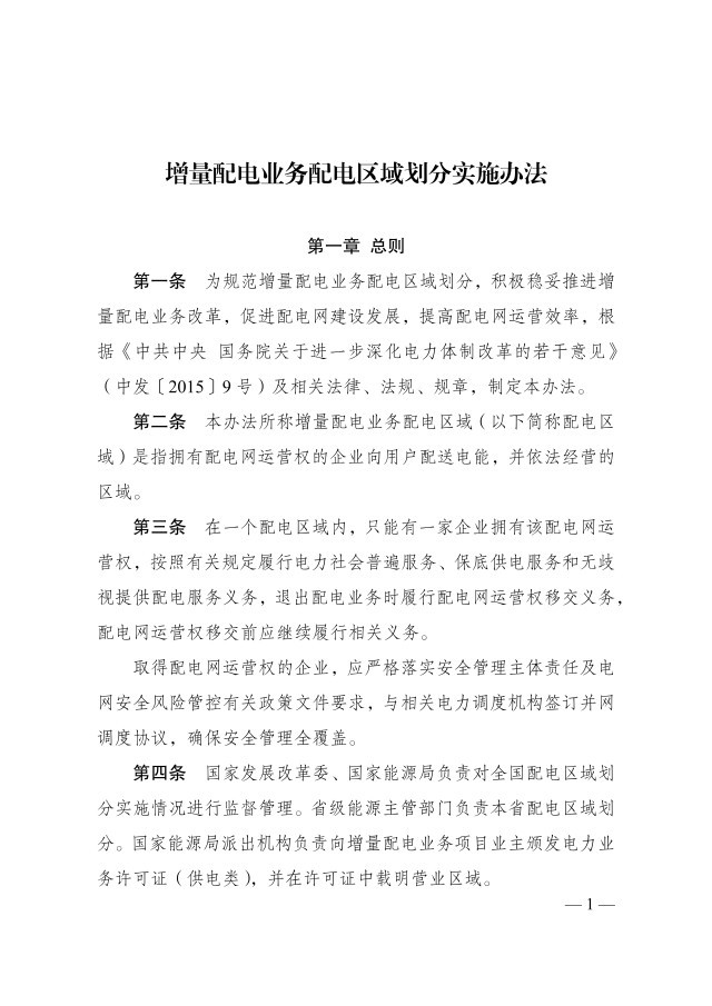 央視網(wǎng)消息:據(jù)國家發(fā)展改革委、國家能源局,為規(guī)范增量配電業(yè)務(wù)配電區(qū)域劃分,積極穩(wěn)妥推進(jìn)增量配電業(yè)務(wù)改革,國家發(fā)展改革委、國家能源局修訂了《增量配電業(yè)務(wù)配電區(qū)域劃分實(shí)施辦法》。