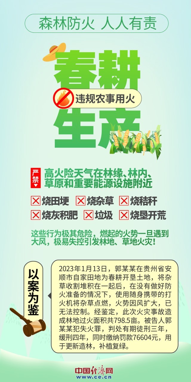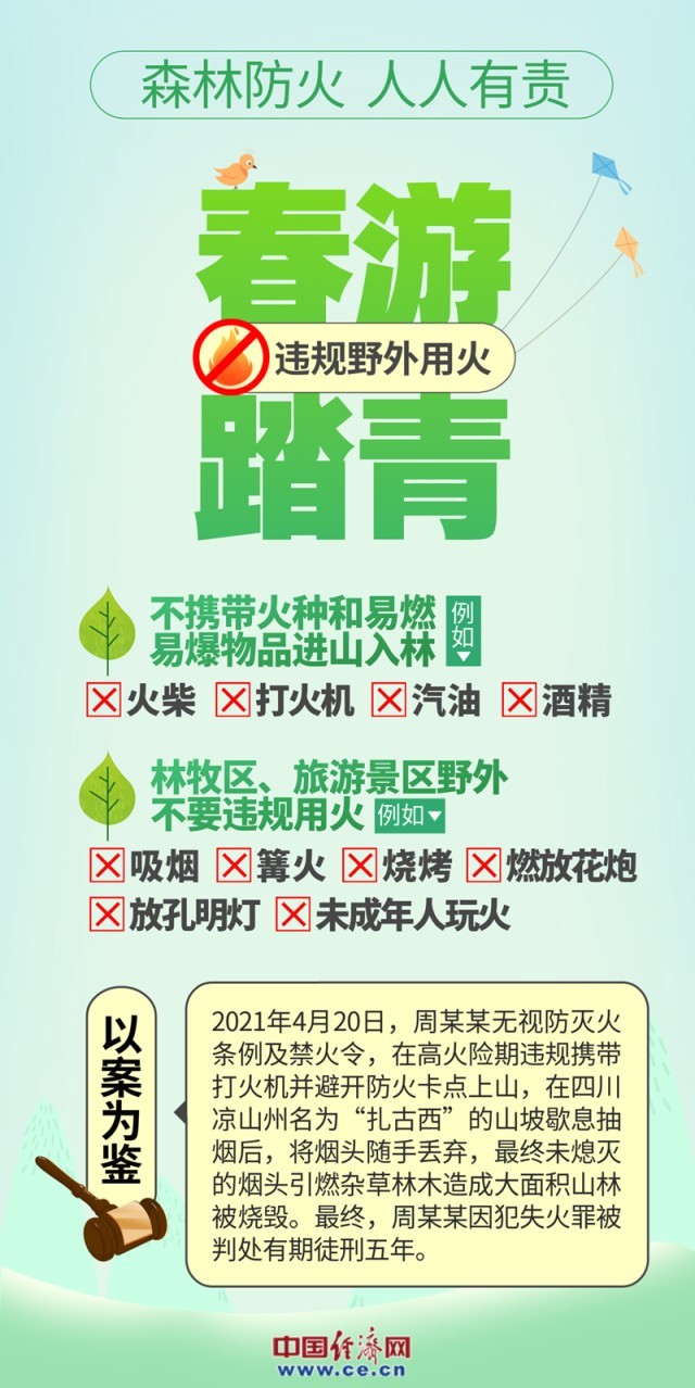 數(shù)據(jù)顯示,超九成的森林火災(zāi)都是由人為因素引發(fā)。全面加強森林防火工作,確保森林資源和生態(tài)環(huán)境的安全,是每個公民的責(zé)任。希望全社會增強護(hù)林防火意識,牢記森林防火“十不要”,從我做起,從小事做起,共同守護(hù)綠色家園。