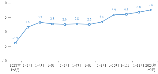 互聯(lián)網(wǎng)業(yè)務(wù)收入穩(wěn)步提升。1—2月份,我國(guó)規(guī)模以上互聯(lián)網(wǎng)和相關(guān)服務(wù)企業(yè)(以下簡(jiǎn)稱互聯(lián)網(wǎng)企業(yè))完成互聯(lián)網(wǎng)業(yè)務(wù)收入2463億元,同比增長(zhǎng)7.6%,增速較2023年全年提升0.8個(gè)百分點(diǎn)。