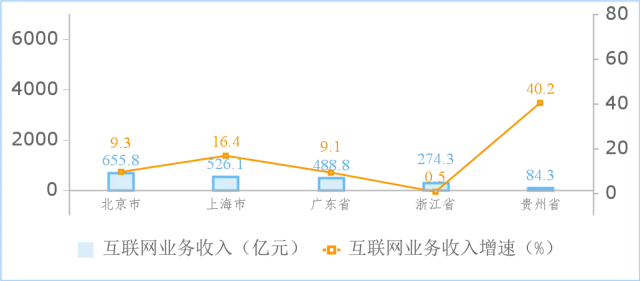 2024年1—2月份收入居前5名省市互聯(lián)網(wǎng)業(yè)務(wù)收入增長(zhǎng)情況