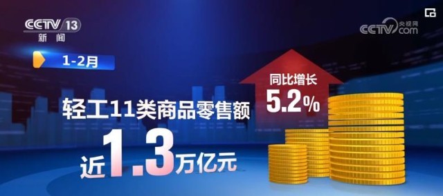 輕工消費品市場活力逐步增強。前兩個月,輕工11類商品零售額近1.3萬億元,同比增長5.2%。輕工全行業(yè)出口額增長17.4%。