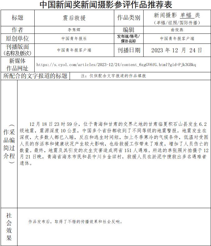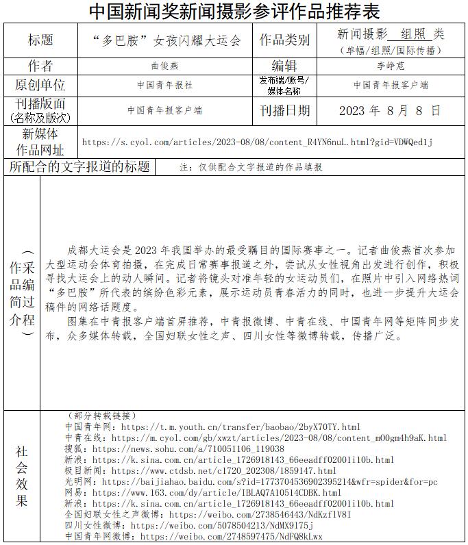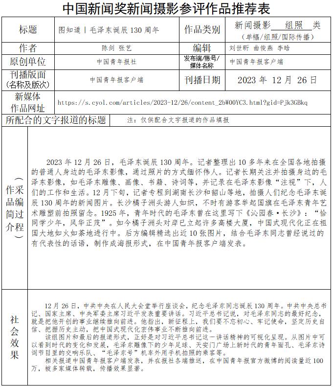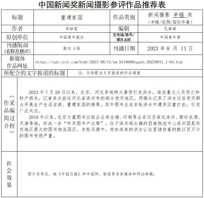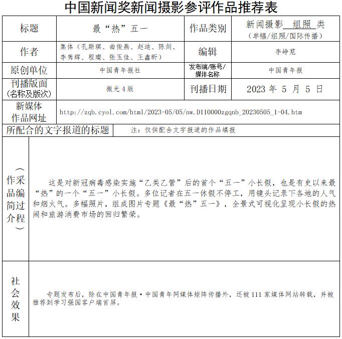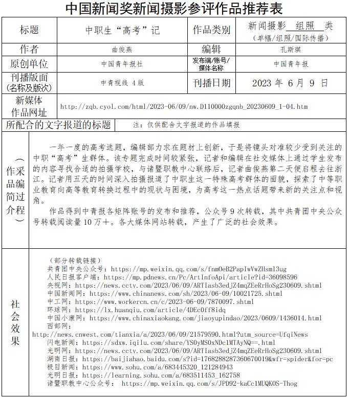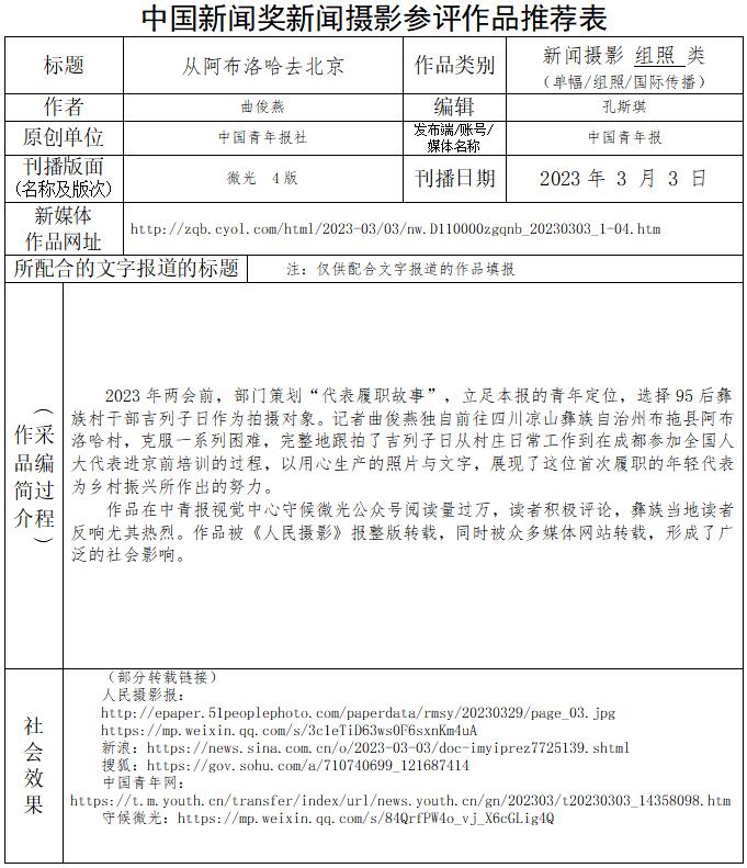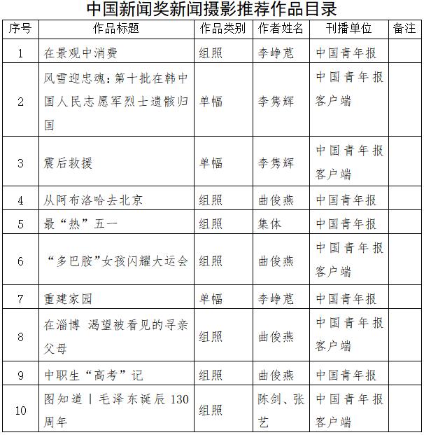 中國(guó)青年報(bào)社推薦參評(píng)第34屆中國(guó)新聞獎(jiǎng)新聞攝影作品專項(xiàng)初評(píng)公示