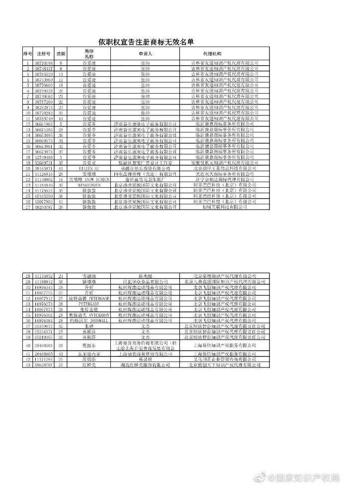 中新網(wǎng)2月14日電 國家知識產(chǎn)權(quán)局14日在其官方微博發(fā)布聲明稱,國家知識產(chǎn)權(quán)局對惡意搶注北京2022年冬奧會和冬殘奧會吉祥物、運動健兒姓名等行為予以堅決打擊,依據(jù)《奧林匹克標志保護條例》、《商標法》第十條第一款第(八)項等規(guī)定,對第41128524號“冰墩墩”、第62453532號“谷愛凌”等429件商標注冊申請予以駁回;依據(jù)《商標法》第四十四條第一款規(guī)定,對已注冊的第41126916號“雪墩墩”、第38770198號 “谷愛凌”等43件商標依職權(quán)主動宣告無效。