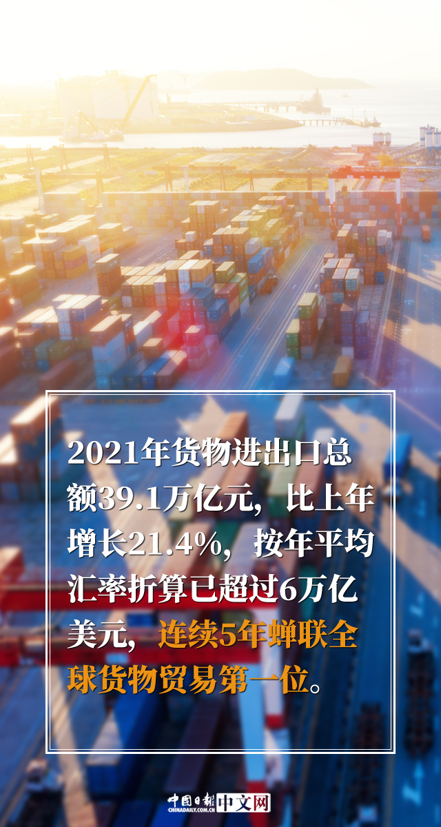 2021年,我國成功戰(zhàn)勝疫情等多重挑戰(zhàn),經(jīng)濟(jì)實力、社會生產(chǎn)力和綜合國力穩(wěn)步提高,改革開放創(chuàng)新深入推進(jìn),民生福祉持續(xù)提升,實現(xiàn)了“十四五”良好開局。最新發(fā)布的《2021年國民經(jīng)濟(jì)和社會發(fā)展統(tǒng)計公報》顯示,2021年,我國國內(nèi)生產(chǎn)總值(GDP)比上年增長8.1%,兩年平均增長5.1%,在全球主要經(jīng)濟(jì)體中名列前茅;連續(xù)5年蟬聯(lián)全球貨物貿(mào)易第一位;主要工業(yè)產(chǎn)品產(chǎn)量穩(wěn)居世界首位……我國遞出了一份亮眼的“成績單”。