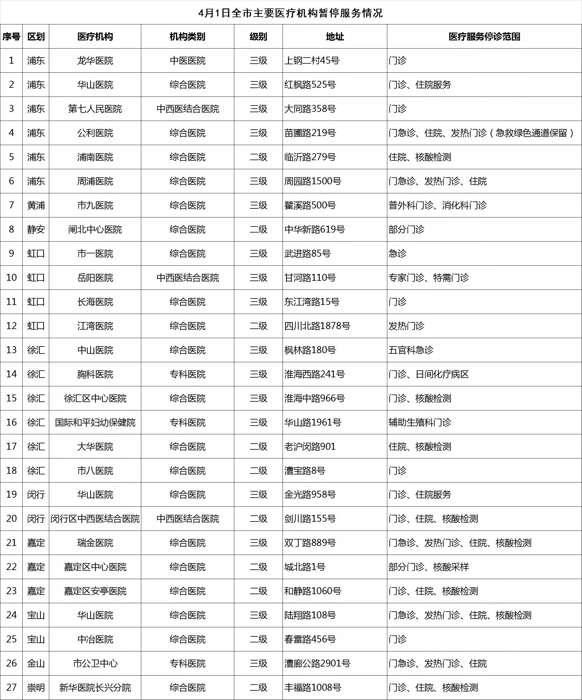 @上海市民 4月1日上海這些醫(yī)療機(jī)構(gòu)暫停醫(yī)療服務(wù)
