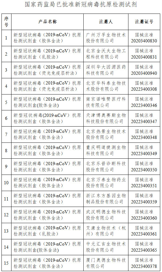 據(jù)國家藥監(jiān)局網(wǎng)站消息,4月20日,國家藥監(jiān)局再次審查批準2個新冠病毒抗原檢測試劑產(chǎn)品。至此,國家藥監(jiān)局已批準29個新冠病毒抗原檢測試劑產(chǎn)品。