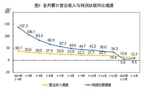 總體來(lái)看,一季度減稅降費(fèi)、助企紓困多措并舉,工業(yè)企業(yè)利潤(rùn)保持平穩(wěn)增長(zhǎng)。但也要看到,外部輸入性通脹壓力加大,新冠肺炎疫情多點(diǎn)散發(fā),給工業(yè)經(jīng)濟(jì)平穩(wěn)發(fā)展帶來(lái)諸多挑戰(zhàn),企業(yè)生產(chǎn)經(jīng)營(yíng)困難增多。一季度,規(guī)模以上工業(yè)企業(yè)利潤(rùn)增速比上年四季度回落3.8個(gè)百分點(diǎn),并且不同行業(yè)、不同類(lèi)型企業(yè)間利潤(rùn)分化明顯;工業(yè)企業(yè)營(yíng)業(yè)收入增長(zhǎng)放緩,工業(yè)產(chǎn)銷(xiāo)銜接水平下降,企業(yè)庫(kù)存高位運(yùn)行,中小企業(yè)成本壓力仍然較大。