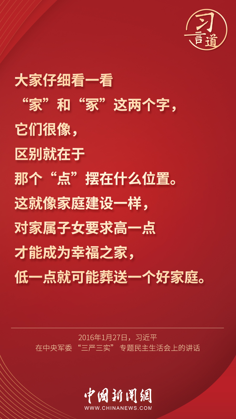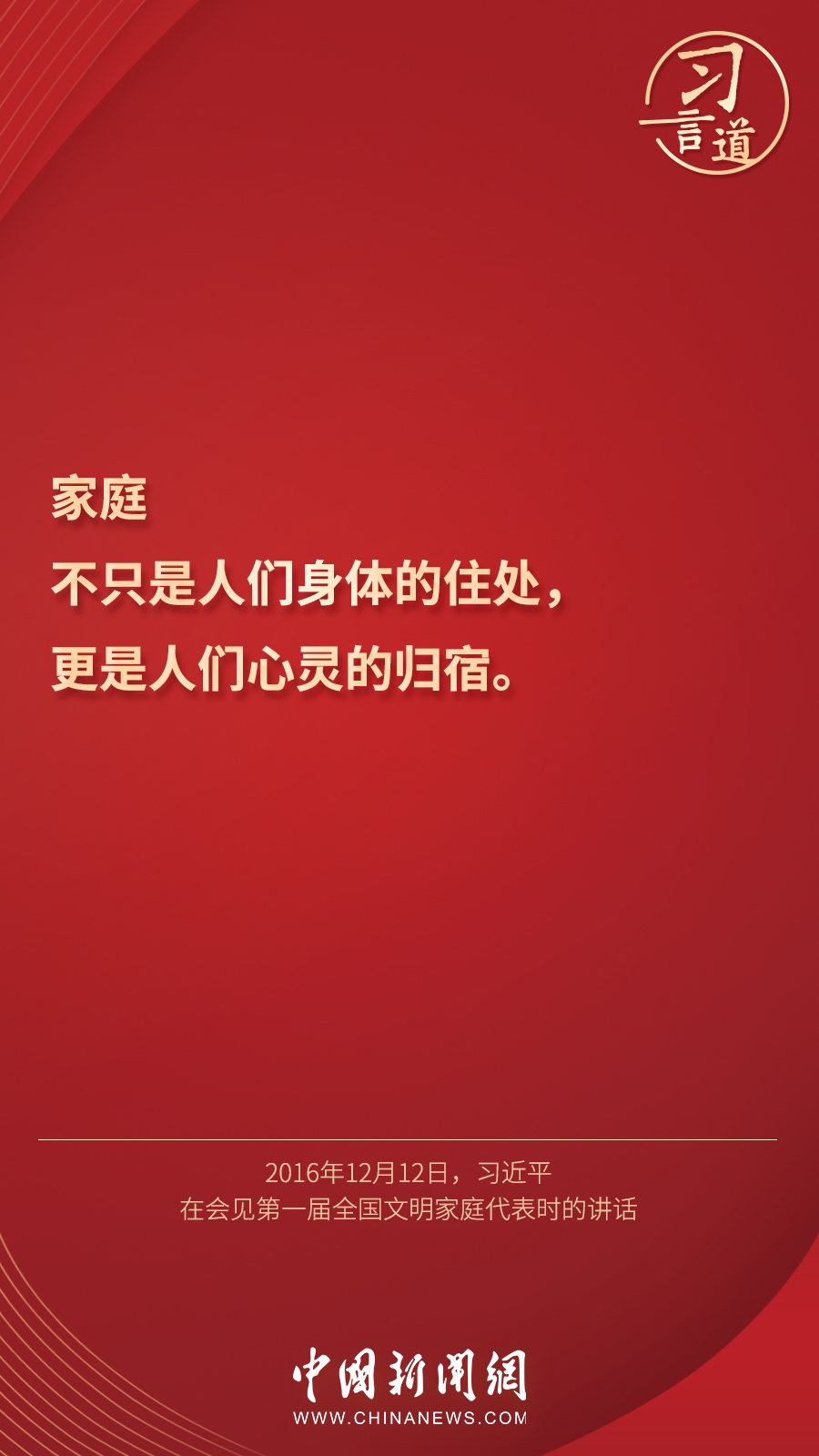 “家庭不只是人們身體的住處,更是人們心靈的歸宿?!苯陙恚?xí)近平總書記發(fā)表過諸多關(guān)于重視親情、營造良好家風(fēng)的重要論述,他指出——