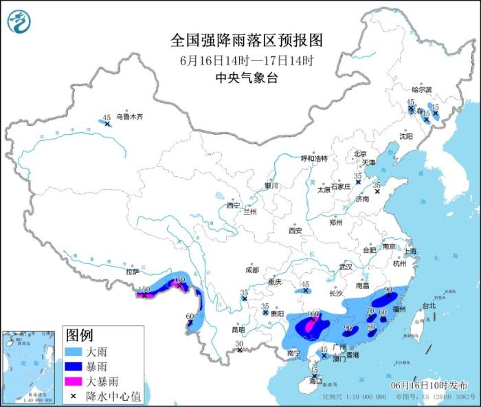 中新網(wǎng)6月16日電 據(jù)中央氣象臺網(wǎng)站消息,中央氣象臺6月16日10時繼續(xù)發(fā)布暴雨藍色預(yù)警:預(yù)計,6月16日14時至17日14時,福建、江西南部、湖南南部、廣東大部、廣西中東部以及云南西北部、西藏東南部等地的部分地區(qū)有大到暴雨,局地大暴雨(100~160毫米)。上述部分地區(qū)伴有短時強降水(最大小時降雨量20~50毫米,局地可超過60毫米),局地有雷暴大風等強對流天氣。