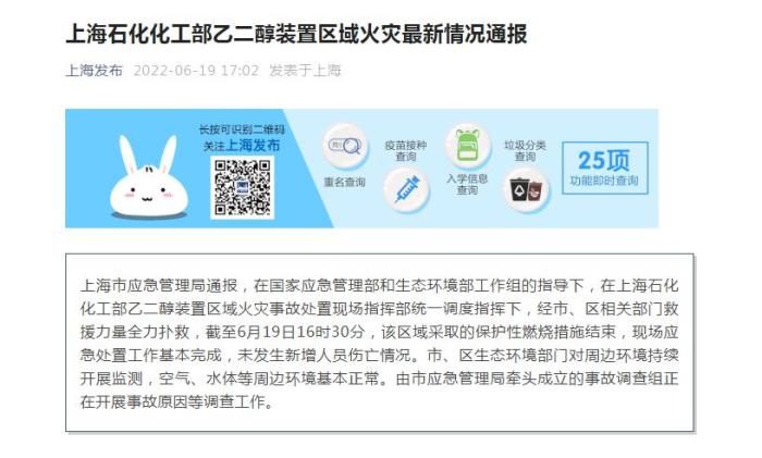上海石化保護性燃燒措施結(jié)束 未發(fā)生新增人員傷亡情況