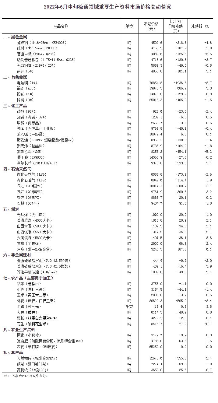 中新財(cái)經(jīng)6月24日電 6月24日,國(guó)家統(tǒng)計(jì)局發(fā)布6月中旬流通領(lǐng)域重要生產(chǎn)資料市場(chǎng)價(jià)格變動(dòng)情況。對(duì)全國(guó)流通領(lǐng)域9大類50種重要生產(chǎn)資料市場(chǎng)價(jià)格的監(jiān)測(cè)顯示,2022年6月中旬與6月上旬相比,18種產(chǎn)品價(jià)格上漲,30種下降,2種持平。其中,生豬(外三元)價(jià)格為16.4元/千克,與上期價(jià)格相比,每公斤上漲0.6元,上漲幅度為3.8%。(完)