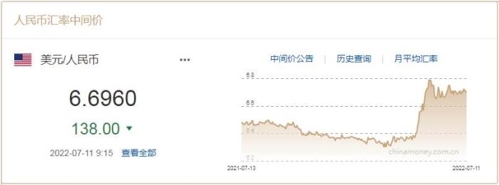 7月11日人民幣對(duì)美元匯率中間價(jià)調(diào)升138個(gè)基點(diǎn)