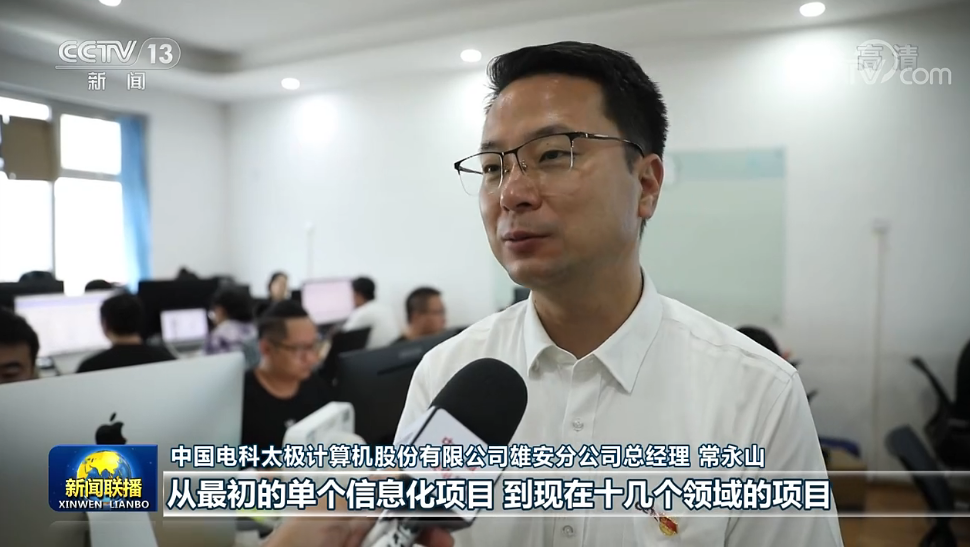 中國電科太極計(jì)算機(jī)股份有限公司雄安分公司總經(jīng)理 常永山:我們剛來新區(qū)的時候,團(tuán)隊(duì)只有兩三個人,經(jīng)過這幾年的發(fā)展已經(jīng)有一百二三十人了,從最初單個的信息化項(xiàng)目,到現(xiàn)在十幾個領(lǐng)域的項(xiàng)目。