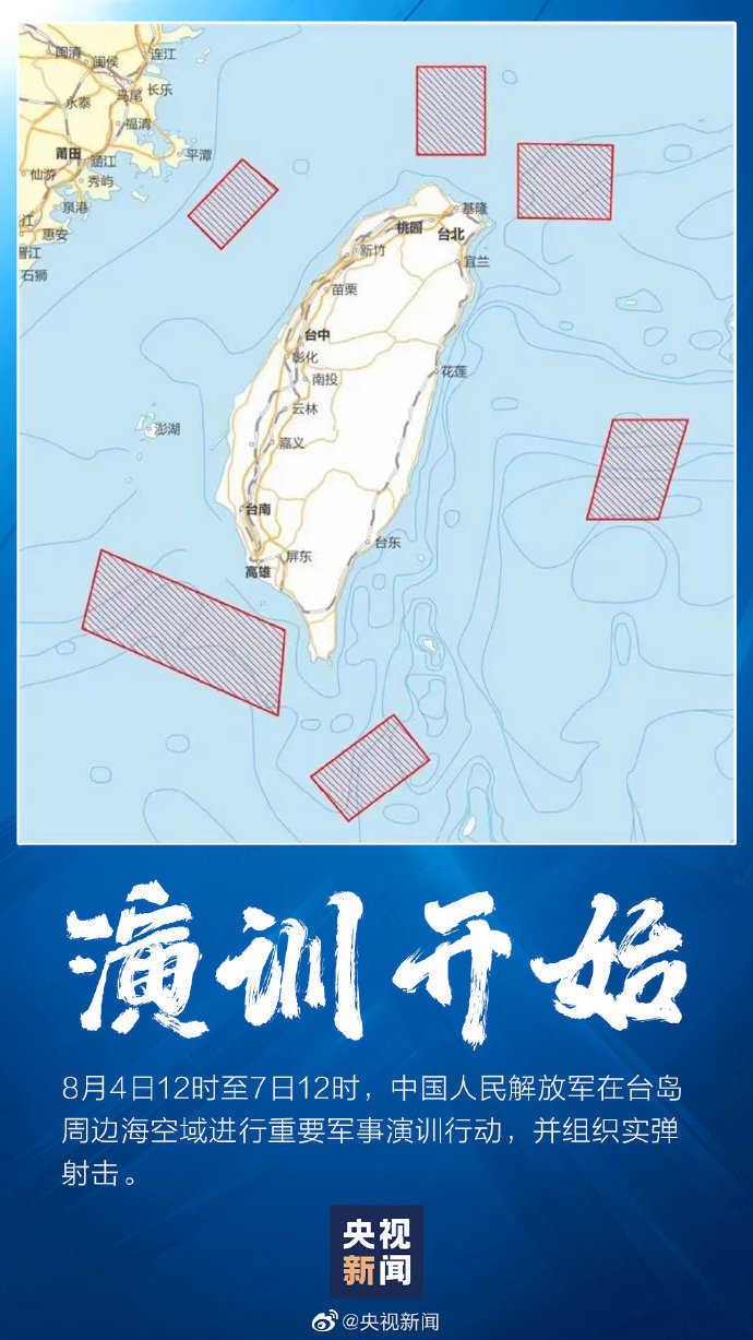 今日12時至7日12時,解放軍重要軍事演訓(xùn)行動進(jìn)行,并組織實彈射擊。此次實戰(zhàn)演訓(xùn)選擇環(huán)島六大區(qū)域,在此期間,有關(guān)船只和飛行器不要進(jìn)入有關(guān)海域和空域!