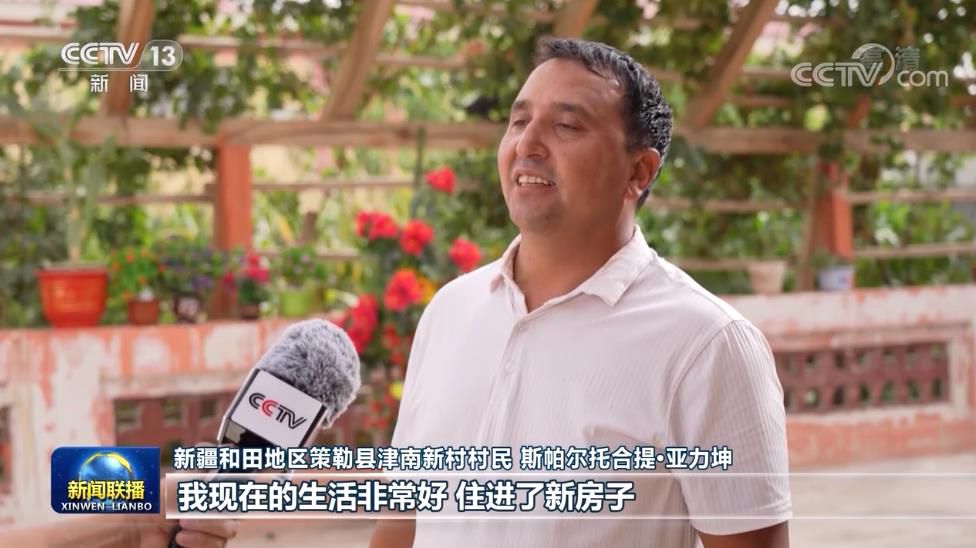 新疆和田地區(qū)策勒縣津南新村村民 斯帕爾托合提·亞力坤:我現(xiàn)在的生活非常好,住進(jìn)了新房子,家里通水通電也有網(wǎng)絡(luò),家里種了兩座大棚,我還當(dāng)貨車司機(jī)配送貨物,我們家一年的收入10多萬(wàn)元,我覺(jué)得生活很幸福,感恩黨、感恩總書記。