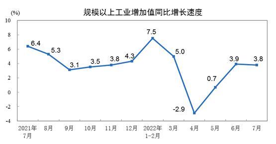 國家統(tǒng)計局:7月份規(guī)模以上工業(yè)增加值增長3.8%