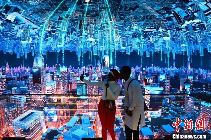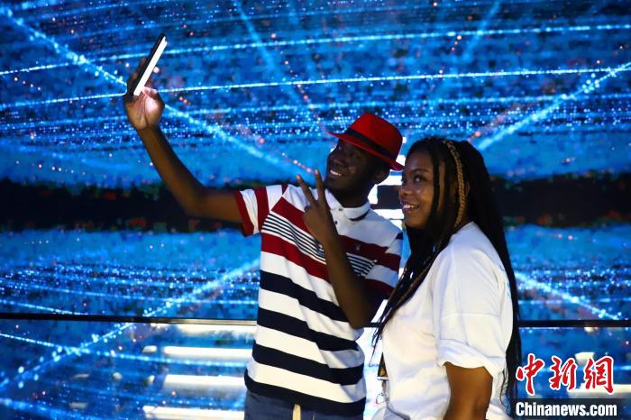 “這個全息投影場景和以往我們?nèi)ミ^的地方都不同,這里通過數(shù)字化的科技手段讓我看到了中國的發(fā)展,了解到中國文化,很神奇、很震撼?!眮碜匀汗埠蛧陌⒗锓浅O矚g這個全息投影場景,與其他留學(xué)生紛紛拿出手機拍照留念。
