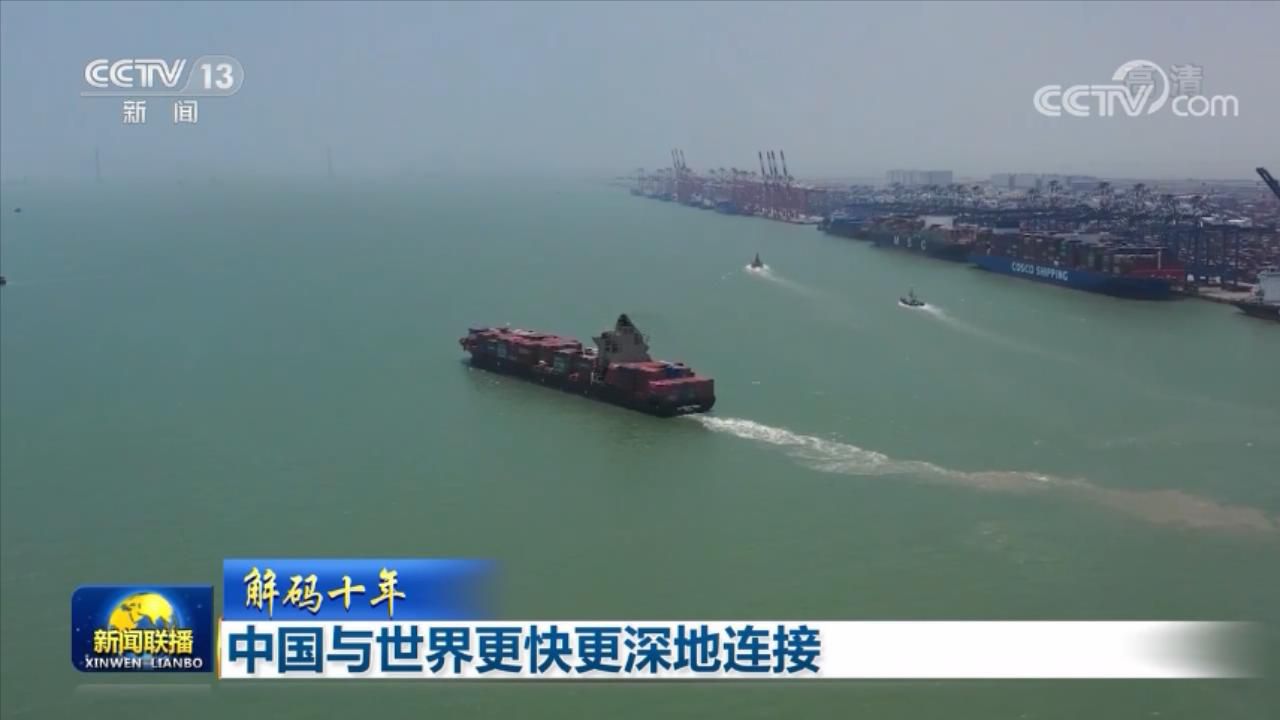 這十年間,中國沿海11個(gè)國際樞紐港口的航線量增長了60%。海運(yùn)服務(wù)網(wǎng)絡(luò)聯(lián)通了100多個(gè)國家和地區(qū)的主要港口,成為全球海運(yùn)連接度最高的國家。