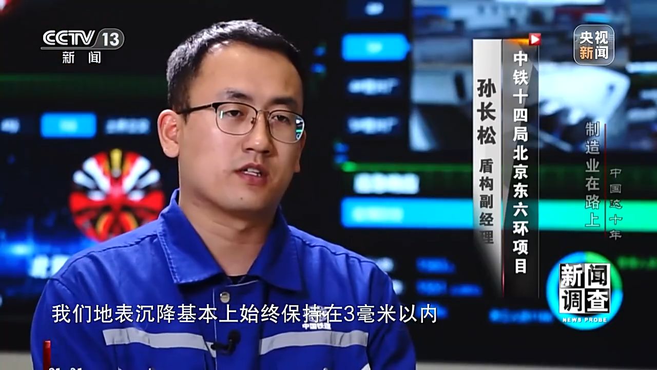 孫長松 中鐵十四局北京東六環(huán)項目盾構副經(jīng)理:我們盾構機開挖直徑是16米07,我們地表沉降基本上始終保持在3毫米以內(nèi)。